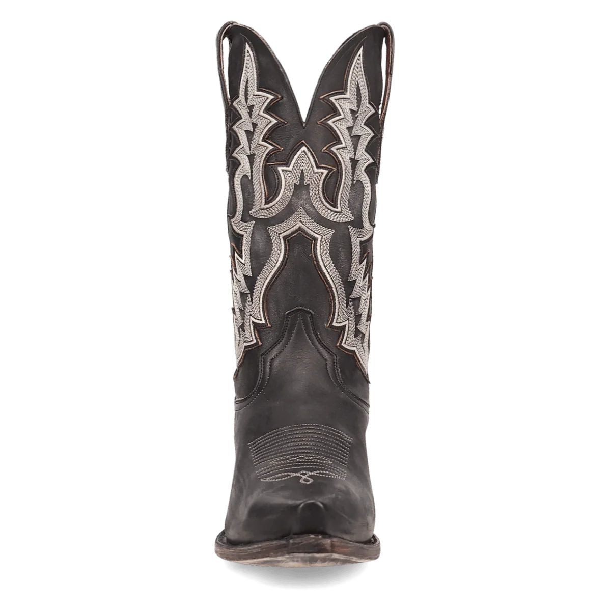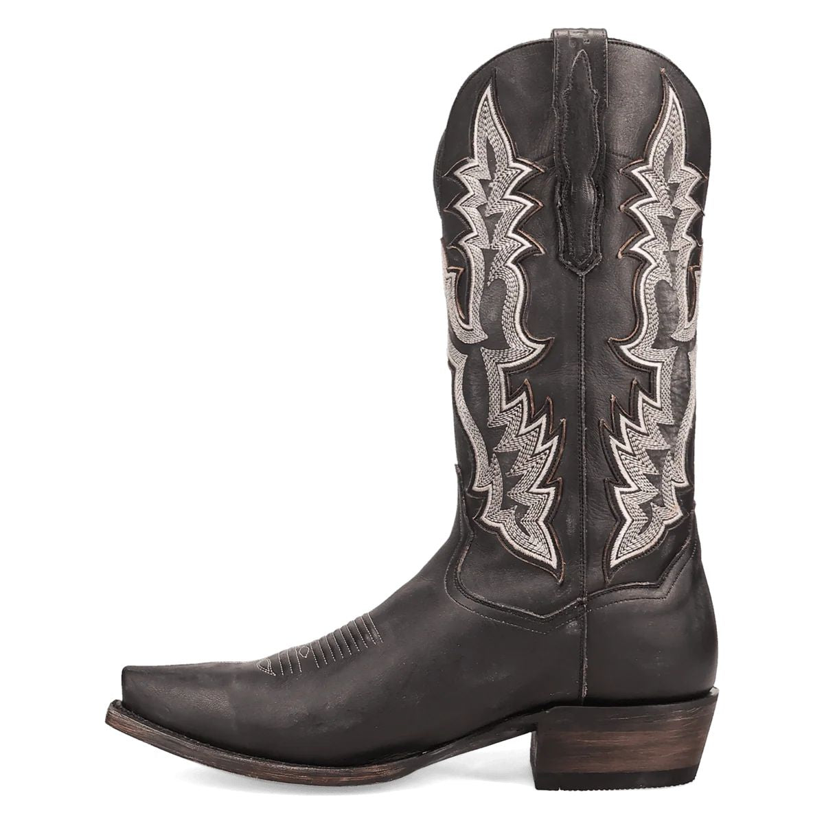 Fuel your journey in the Dan Post Men's Diesel Black Leather Snip Toe Boot DP7034, featuring a 13-inch shaft, snip toe, cowboy heel, durable leather outsole, and a removable Soft Strike Orthotic for all-day comfort and style.