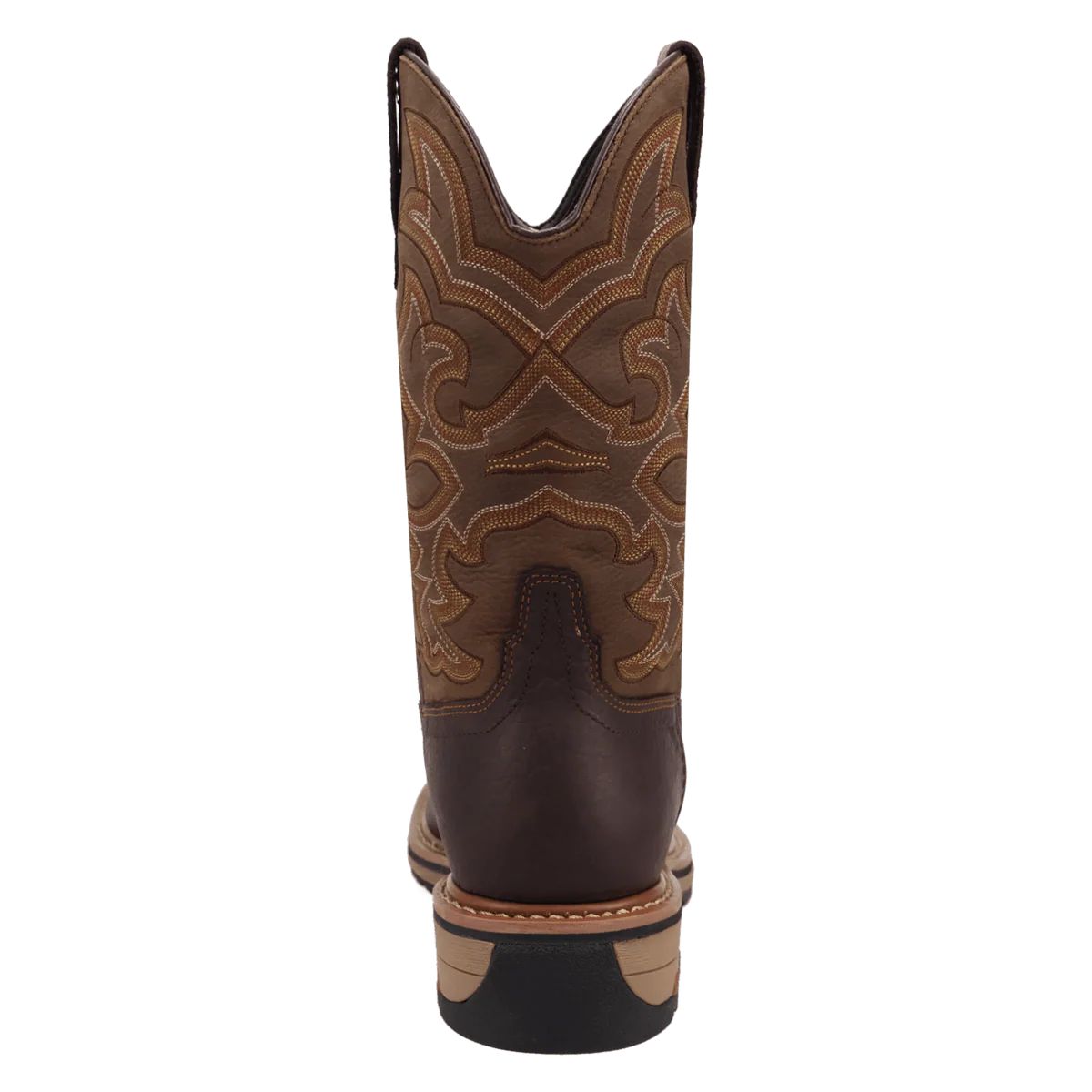 The Dan Post Men's Duster Dark Brown Leather Square Toe Boot DP76924 features an 11-inch tall shaft, a broad square steel toe, and a unit heel. It includes a Soft Strike Max insert for superior comfort and an ultra-light rubber outsole with heat, oil, and slip-resistant properties. Designed for tough conditions, it offers waterproof protection, a steel toe, and electric hazard resistance.