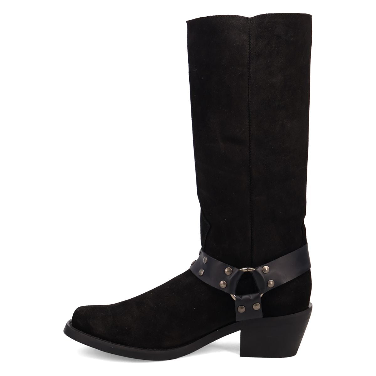 Introducing Dingo Men's Bronco Suede Black Leather Square Toe Boot DI2230-BK, a standout blend of bold style and classic craftsmanship. Made from high-quality all-over suede, these boots feature distinctive harness detailing and elegant stitching on the shaft, giving them a unique, rugged appeal. Designed for comfort and built to last, the Bronco is perfect for any occasion. Elevate your wardrobe with the Bronco and embrace a look that’s both adventurous and refined.