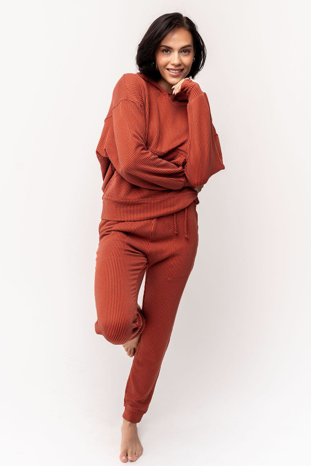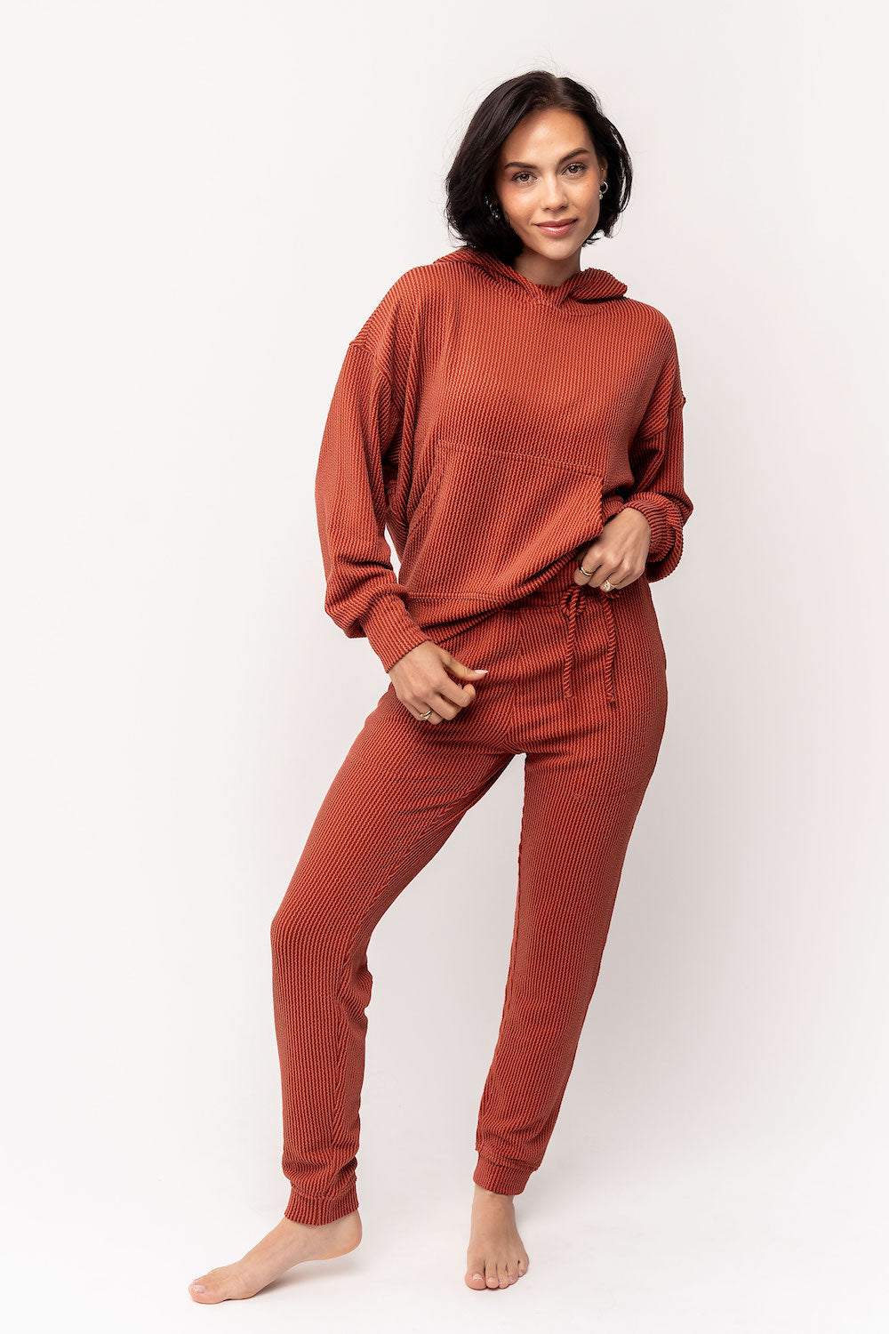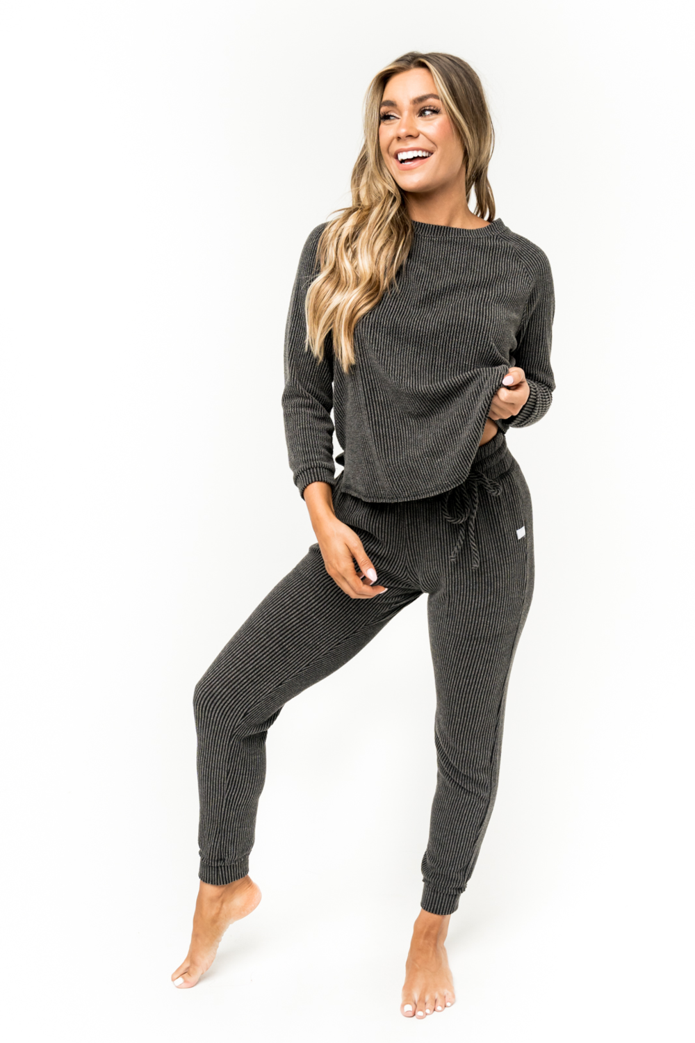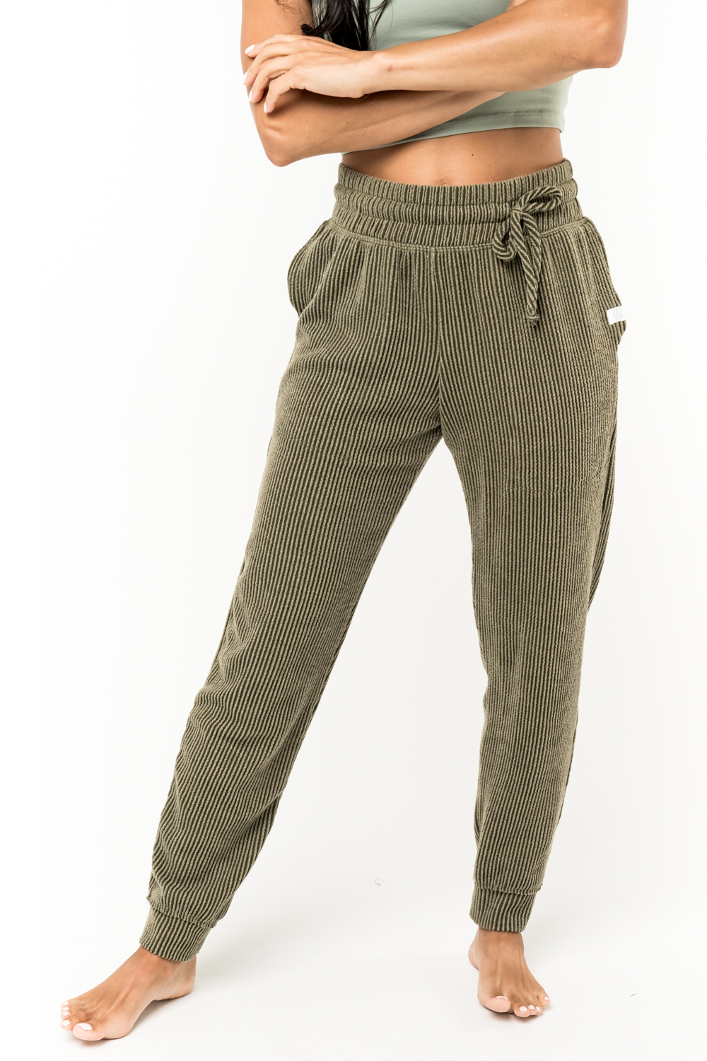 The "Boardwalk" jogger is so cute, and so-comfy. It goes perfectly with our "Cape Cod" crew neck in our ever-so-popular 'Urban Love' fabric. This jogger has two-pockets and a functional tie at the waist. This is a perfect piece for a stroll down the "Boardwalk," or simply chilling at home, with family and friends. Polyester/Rayon/Spandex blend. 26 in. inseam above ankle. SKU# 22P554.