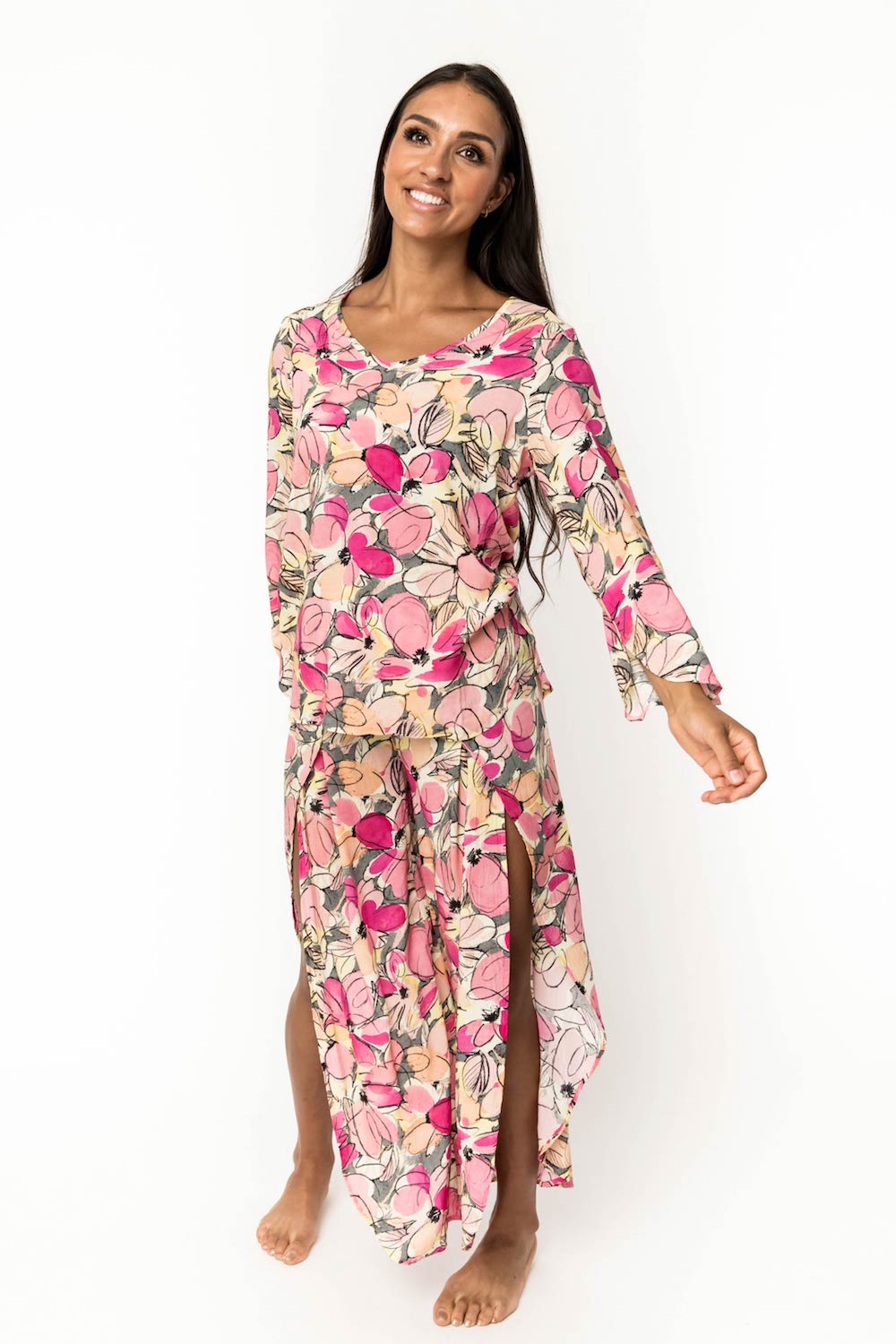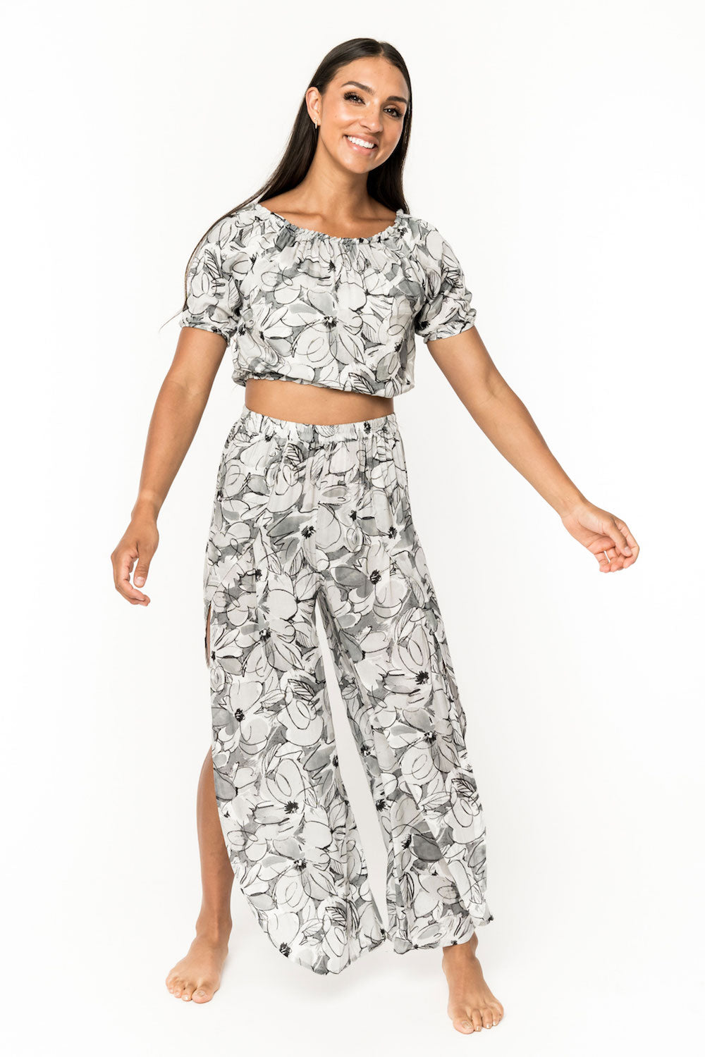 Our beautifully loose and flowy Chloe wrap pant is made of 100% rayon and features an elasticised waist for all-day comfort. Wear it casual or as a beach coverup by day, then dressy with heels for style points at night. Regardless, for vacay vibes, you can't beat Chloe! SKU# 22P551