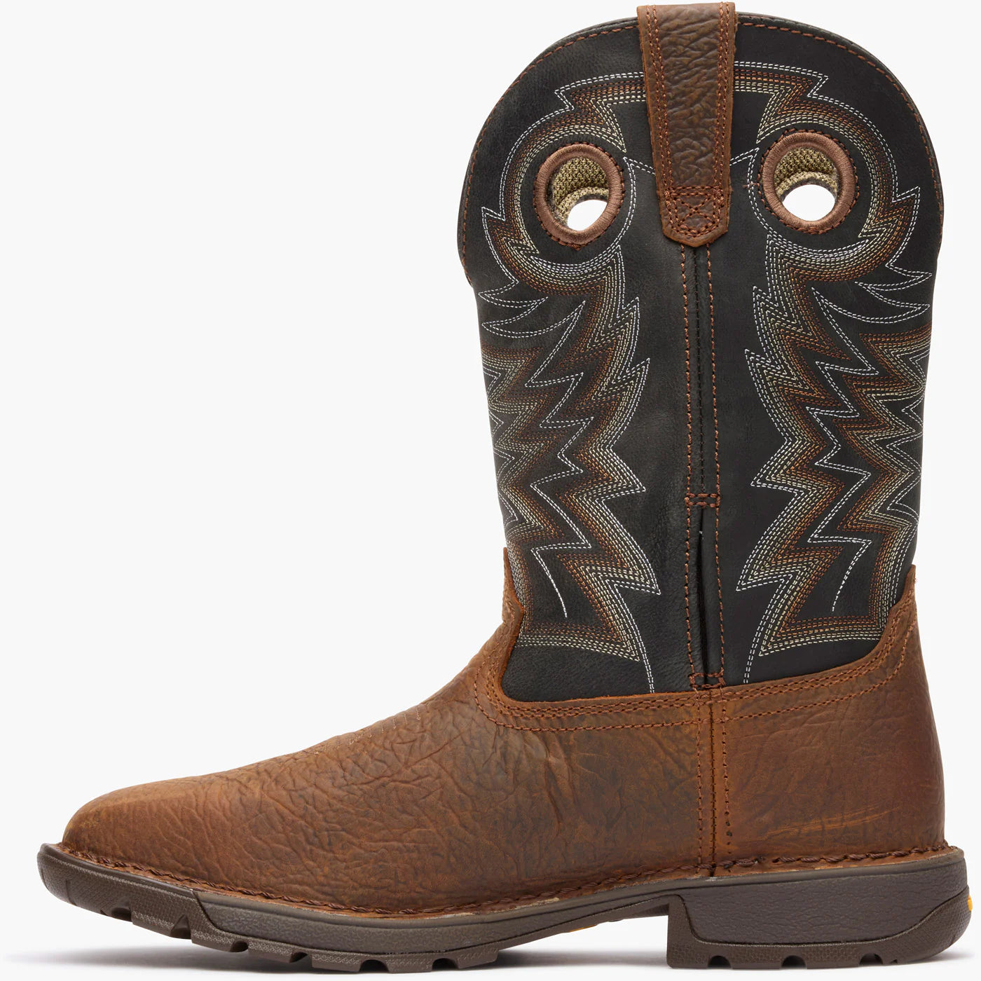 The Rocky Legacy 32 Steel Toe takes a classic work western silhouette and adds the latest in comfort and technology. These eleven-inch brown work boots are designed to offer all-day comfort, safety, and stability. With a stitch-out construction, an oil and slip resisting Nicotine Proprietary Vibram® rubber outsole with a cushioned EVA midsole, and a fiberglass shank, these boots are built to last. Take on any terrain with waterproof full-grain SPR leather and Rocky's VP Waterproof technology that keeps your feet dry without trapping perspiration in. Getting into these boots is easier than ever with Rocky's Expansion Fit Seam that stretches when putting the boot on and then returns to its original shape. These boots feature a square steel toe to protect you all day. If you're looking for a work wellington boot that looks as good as it feels and offers safety where you need it the most, buy the Rocky Legacy 32 Steel Toe 11" work western boot.