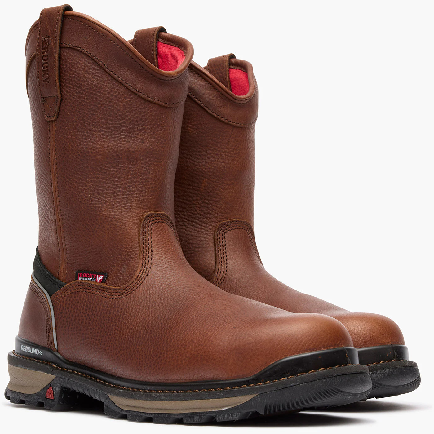 This waterproof Rams Horn composite toe work boot is designed with comfort, safety, and durability in mind. This ten-inch work boot features an oil and slip resisting rubber outsole and a fiberglass shank that provides the traction and stability you need. This combined with Rocky's Rebound cushioning midsole and thick EnergyBed LX footbeds with memory foam will ensure that your feet stay comfortable on even the longest days. Mother Nature is no match for these boots, with Rocky's VP Waterproof technology. Our waterproof is designed to keep liquids out without trapping perspiration in, allowing your feet to stay cool and dry all day long. If you're looking for a reliable work boot that is comfortable and can handle whatever is thrown your way, get Rocky's Rams Horn work boot today!