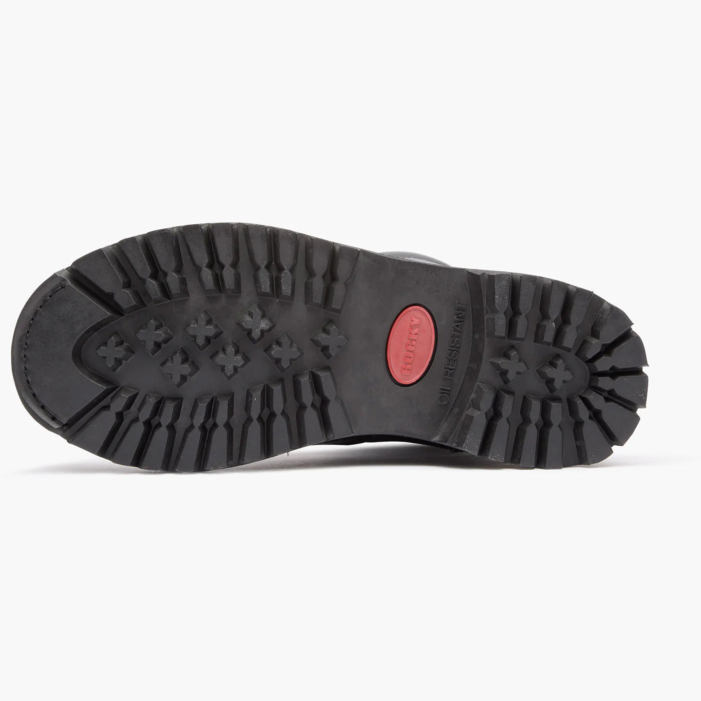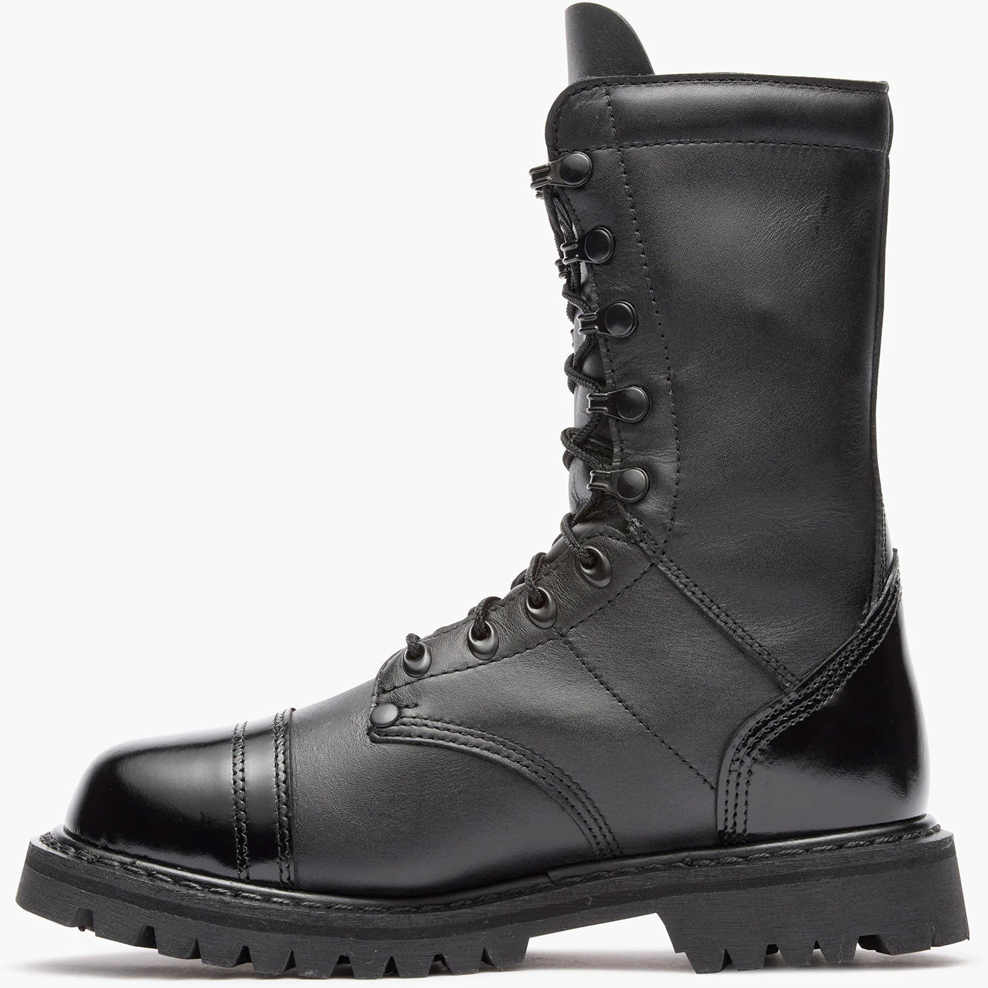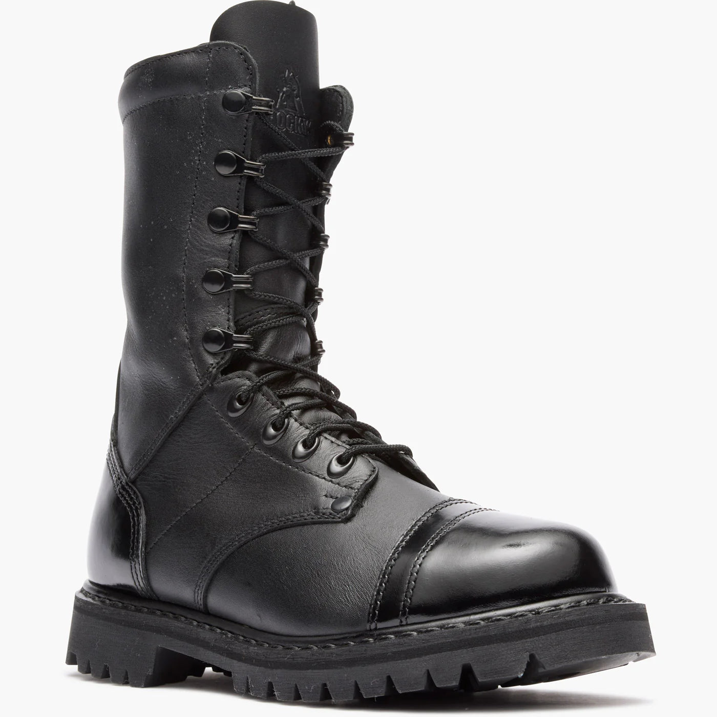 This 10-in boot is a Rocky Classic, now built with a speed lacing system with NATO hooks. The upper has been built from premium full-grain black leather. Keep your boots in tiptop shape with a polishable toe. The Goodyear welt construction gives these boots a longer life with the ability to be repaired with no trouble and revert to their original hardiness. The contoured EVA footbed provides cushioning that will pacify your achy feet and will make standing a much more comfortable experience. The black, rubber lug outsole provides traction and is great for traversing on uneven terrain.