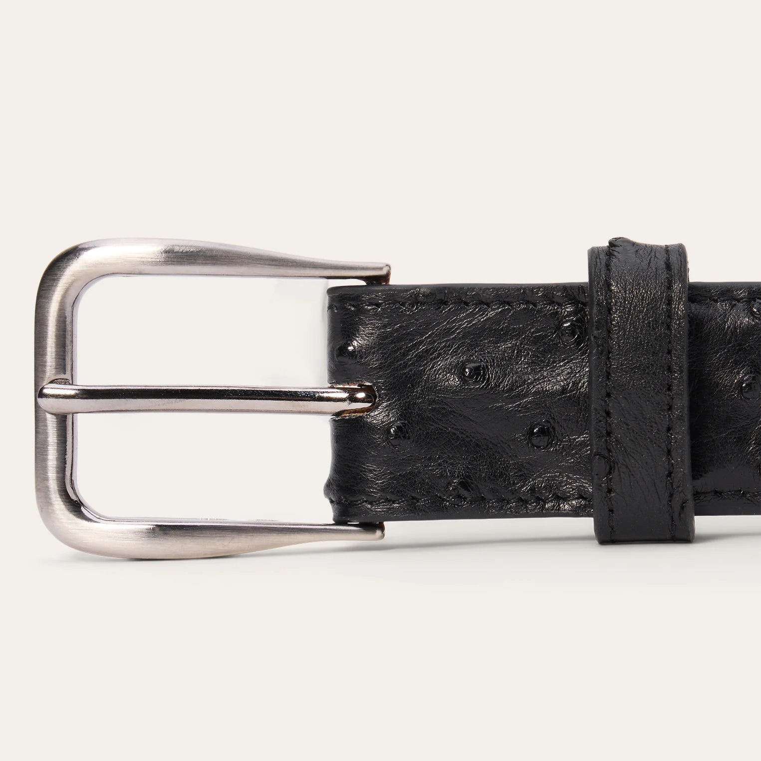 Crafted from genuine Ostrich leather, this belt has a 1 ¼” wide black cowboy classic Ostrich leather strap with western tabs. It features seven holes on the point end to ensure a proper fit for all body types and is finished with a two-tone Stetson buckle. Combining timeless western style with statement-making luxury materials, each of our exotic belts embodies our legendary commitment to quality and attention to detail.