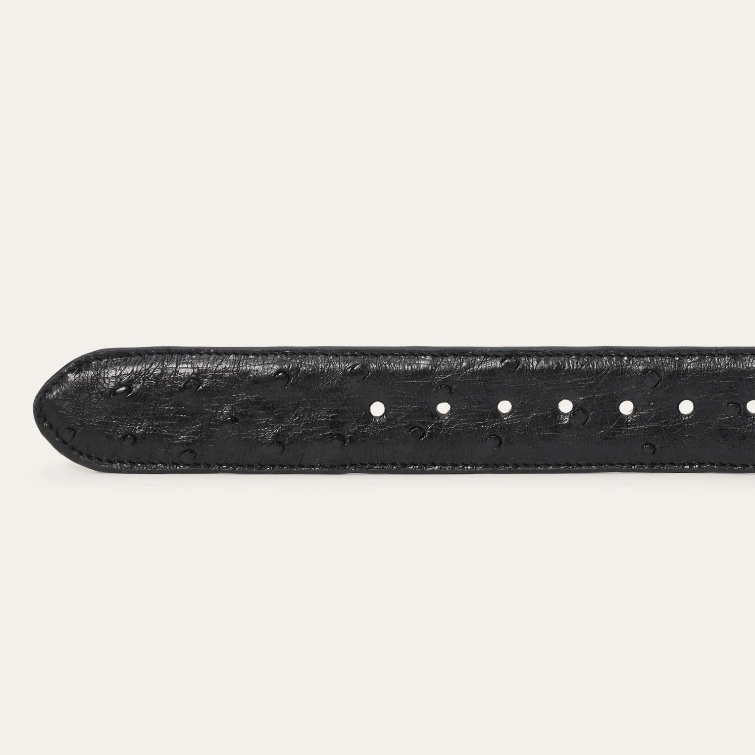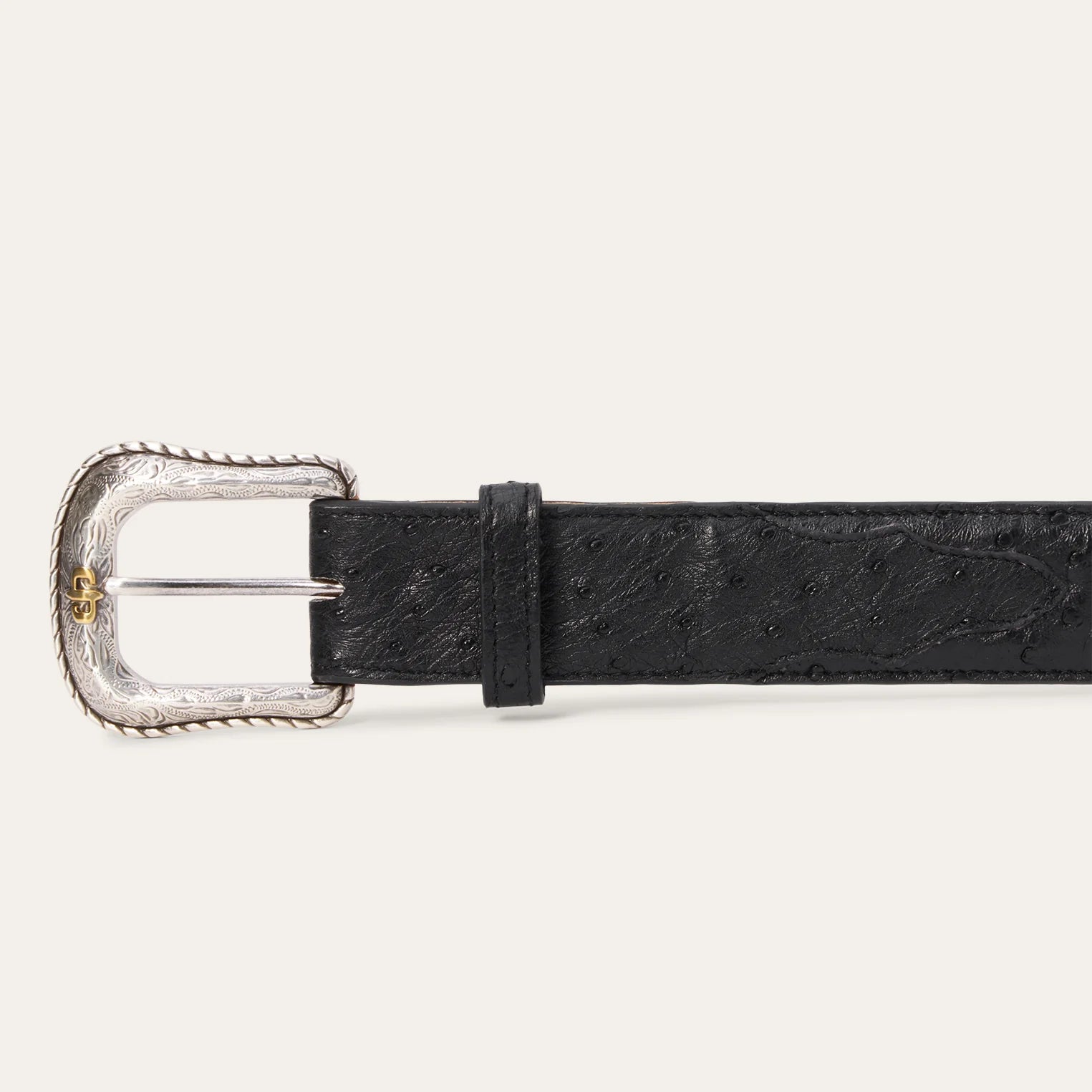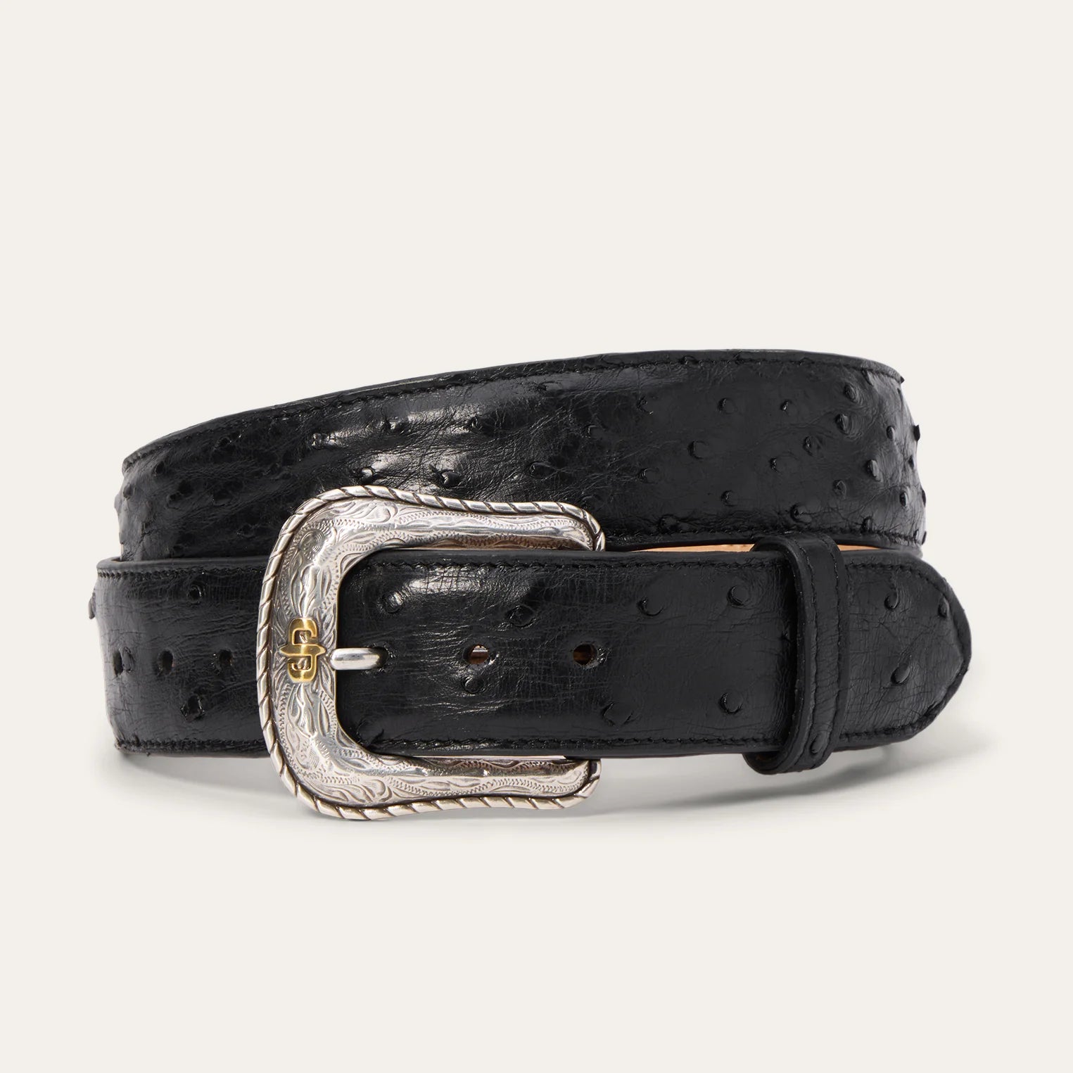 Crafted from genuine Ostrich leather, this belt has a 1 ½” wide antique cognac Ostrich leather strap with western tabs. It features seven holes on the point end to ensure a proper fit for all body types and is finished with a two-tone Stetson buckle. Combining timeless western style with statement-making luxury materials, each of our exotic belts embodies our legendary commitment to quality and attention to detail.