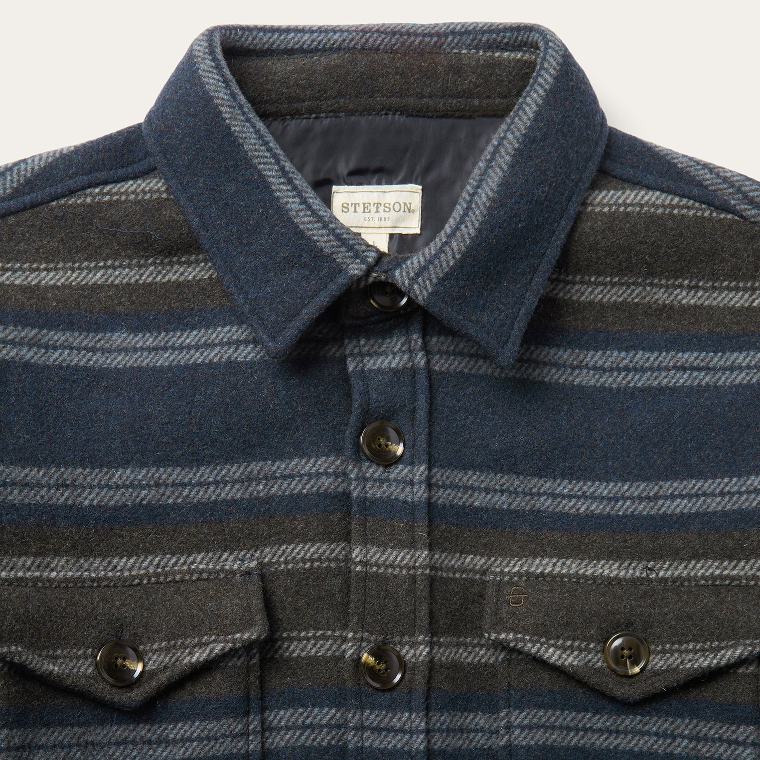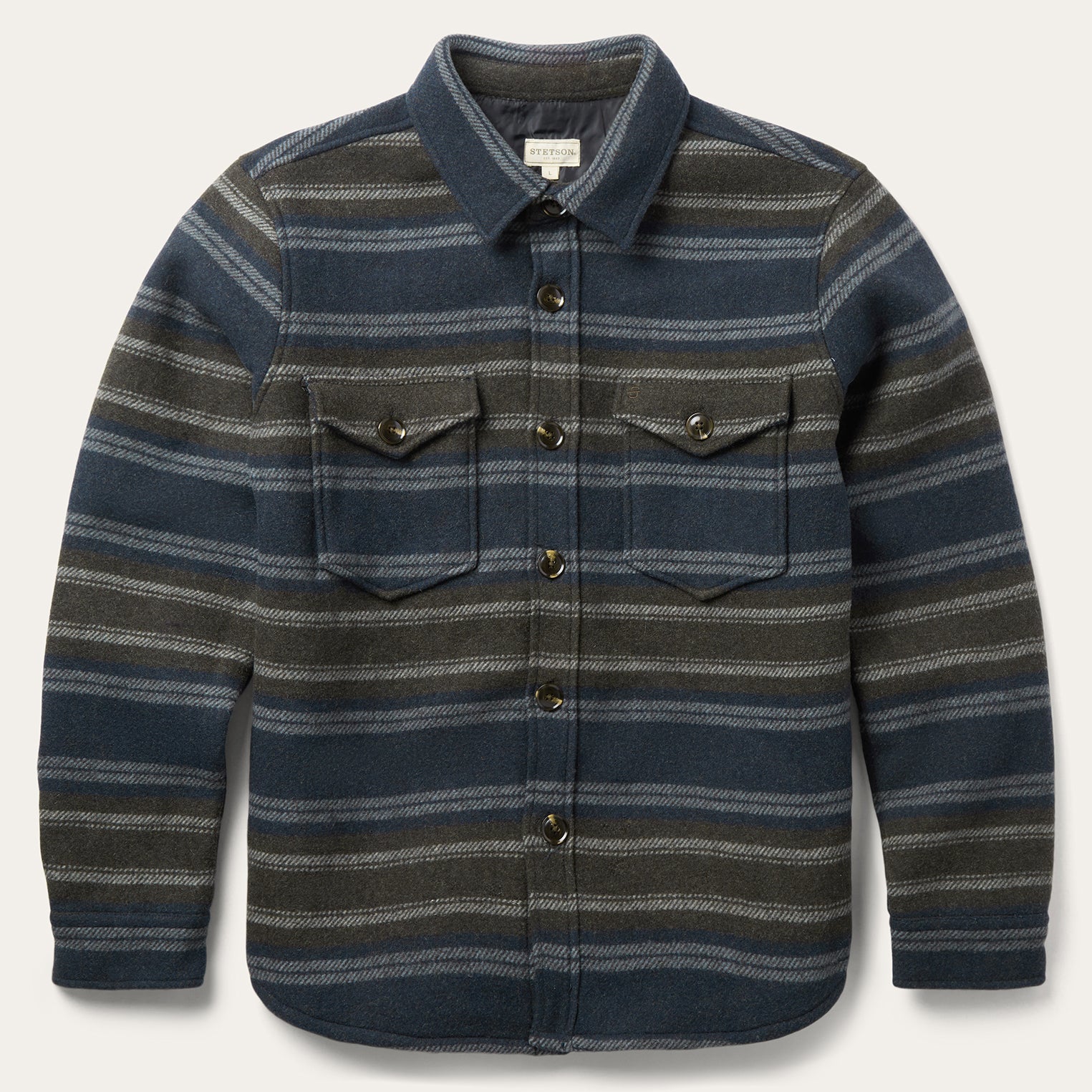 Stetson Men's Blue Wool Blend Stripe Shirt Jacket 6070