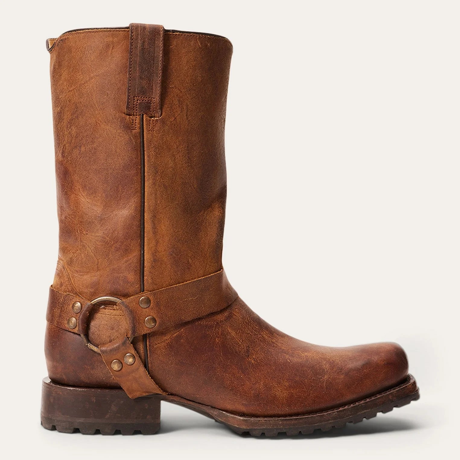 - Stetson Men's Heritage Harness Brown Leather Biker Toe Boots 4124