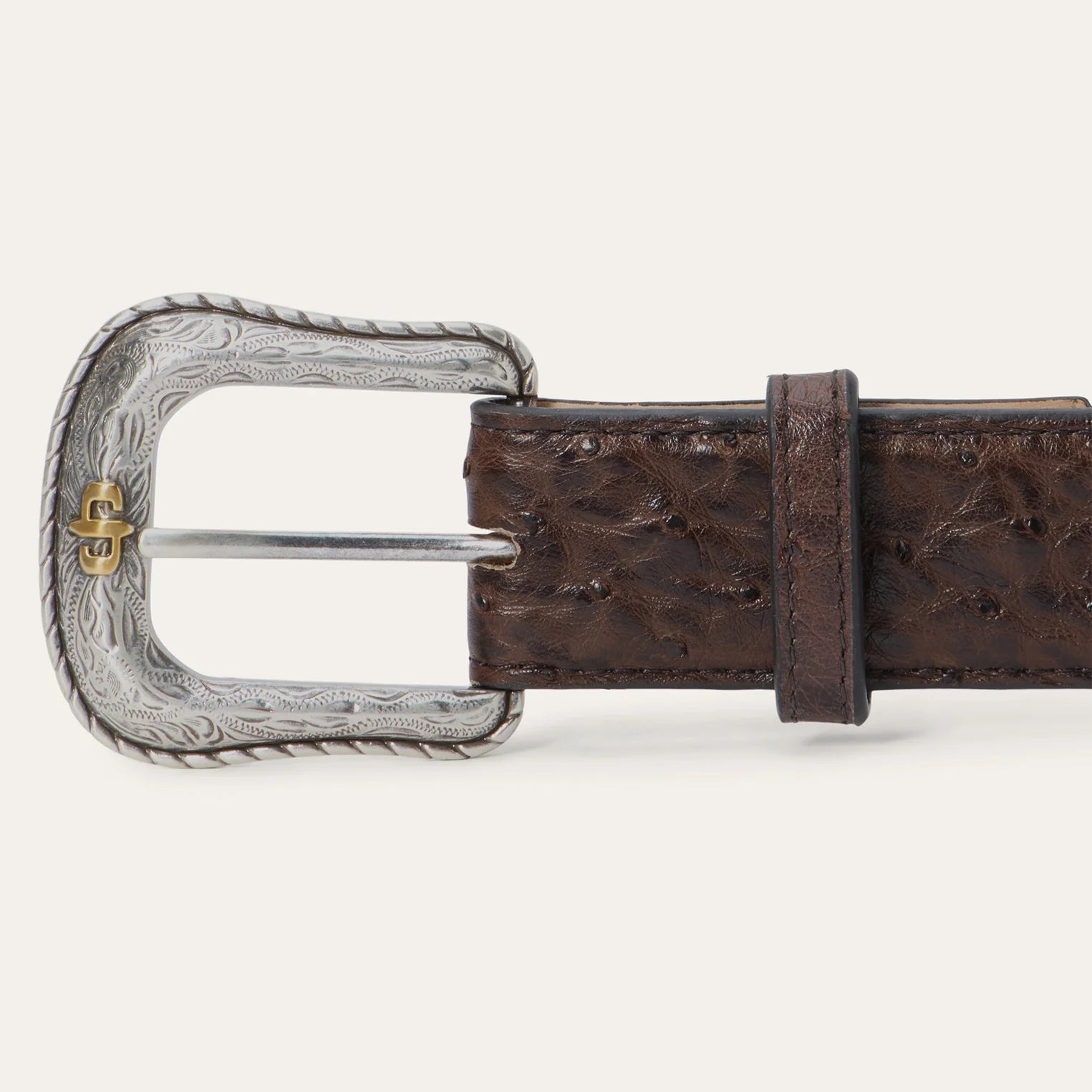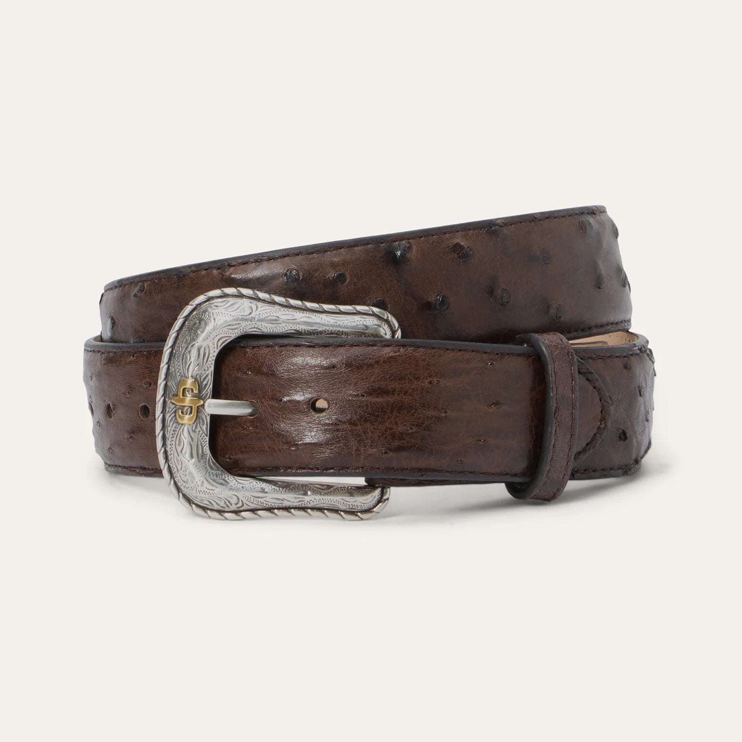Stetson Men's Mocha Brown Ostrich Western Tab Belt