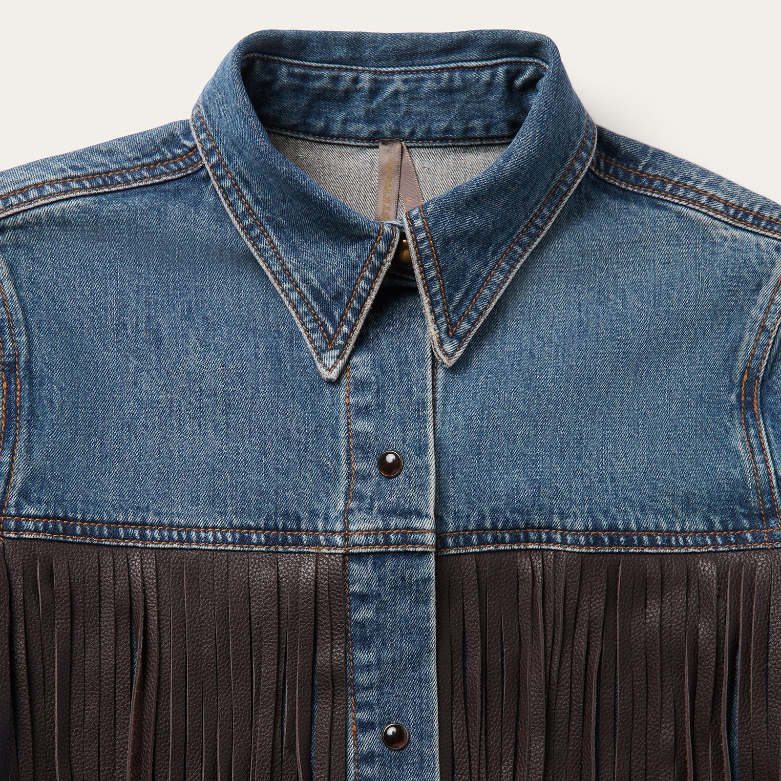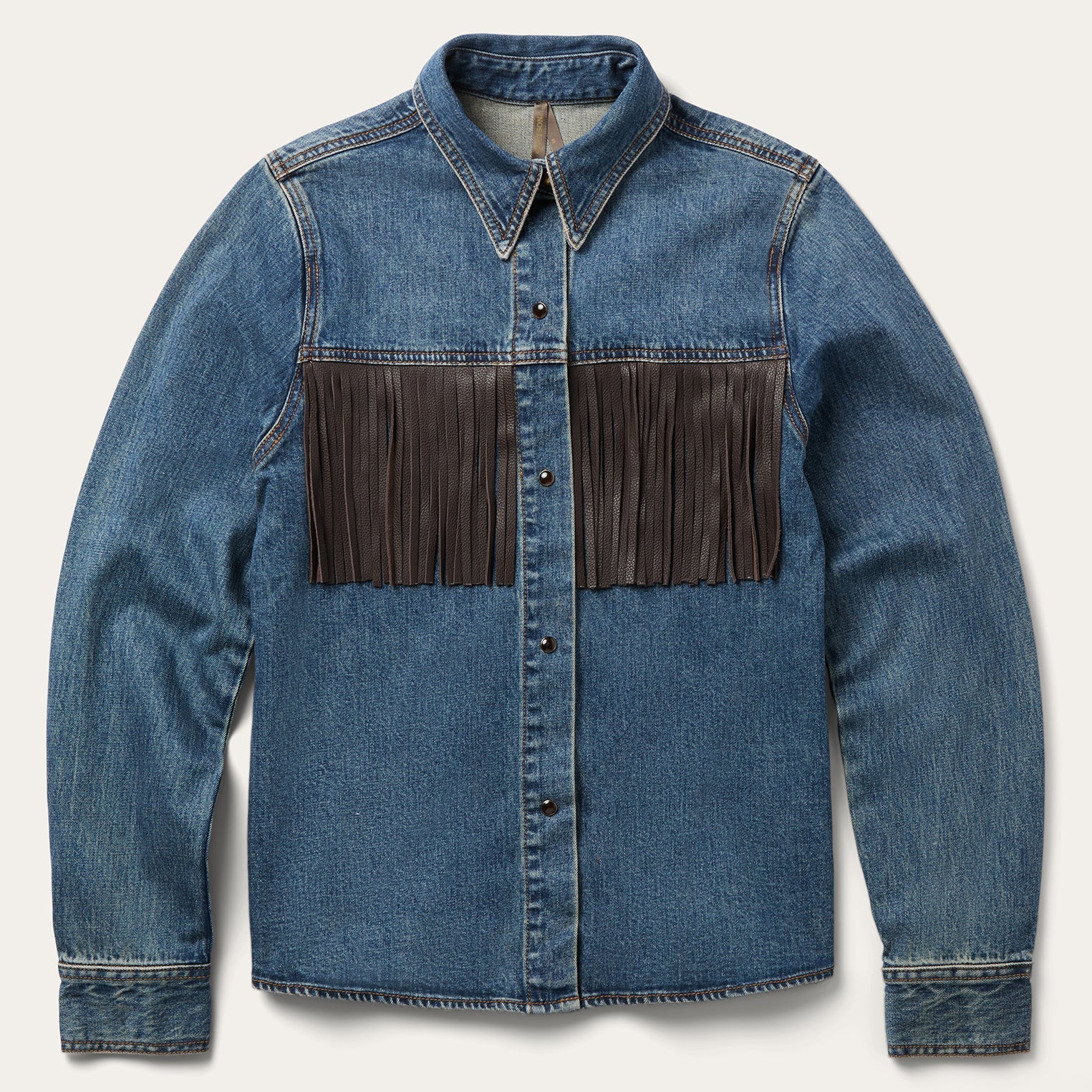 Stetson Women's Blue Leather Fringe Denim Shirt 7063