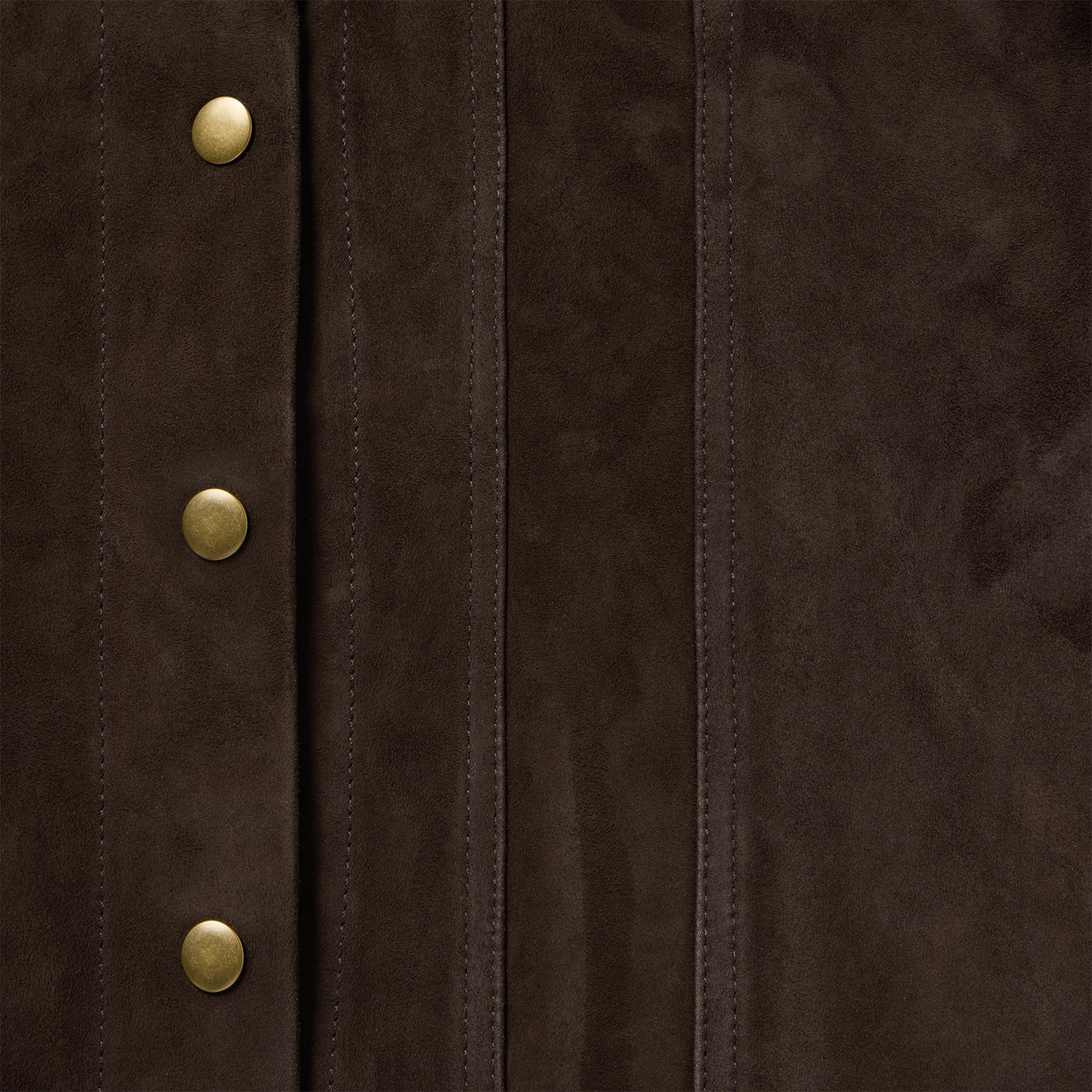 This western-style shirt jacket is crafted from soft, durable 100% lambskin suede and features jean-jacket-style seaming on its front and back. It has straight front and back yokes, a full front metal snap closure, and single point patch pockets. A statement-making, versatile piece that can be dressed up or down, it’s cut with an easy, flattering fit that allows for all-day comfort and freedom of movement.