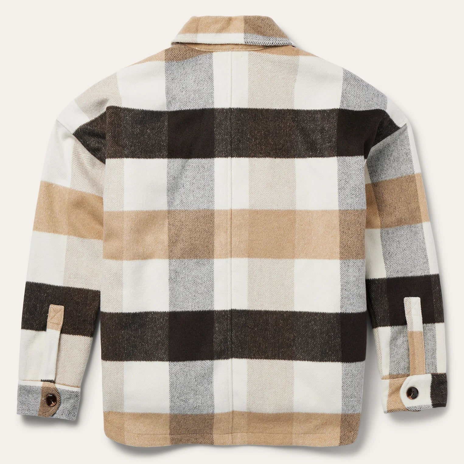 This stylish, oversized plaid shirt jacket is crafted from a cozy wool blend, providing a layer of comfort whenever you need it. It has a full button front, dropped shoulder,s and single button cuffs, patch pockets with button closure flaps on the front and side seam pockets. Its body is sherpa-lined for additional warmth. At Stetson, we use quality materials and fabrics to provide you with the best Western outerwear for women.