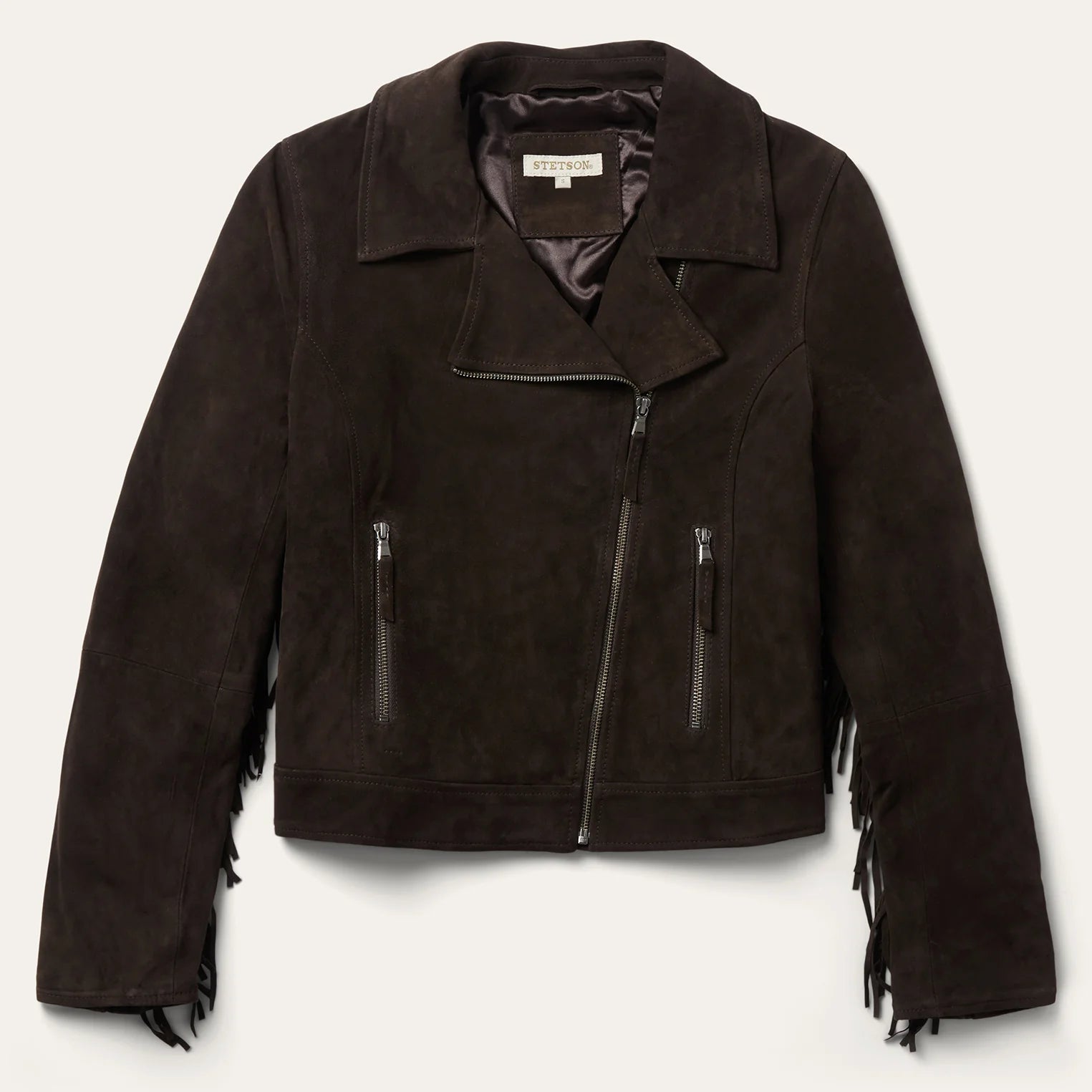 Stetson Women's Brown Suede Fringe Motorcycle Jacket 7107