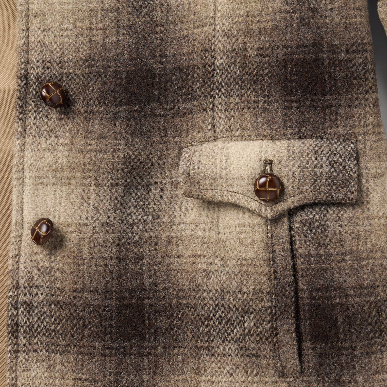 This stylish three-button ombre plaid blazer is crafted from high-quality 100% wool and has a western-inspired style. Authentic details include fancy curved front and back yokes, two inset pockets with flaps and button closure and two-button cuffs. A darted waistline and princess seaming provides a flattering, fitted silhouette, while still allowing for all-day comfort and freedom of movement.