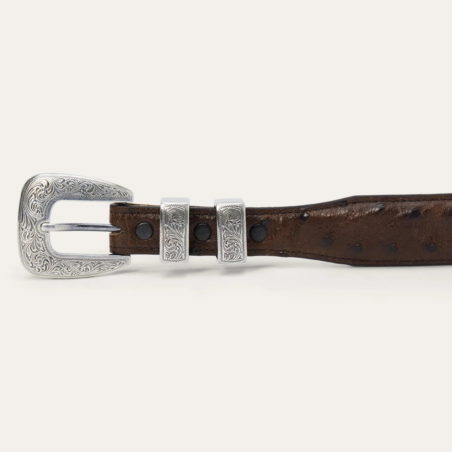 Made from genuine Ostrich leather, this women's belt has a 1 ⅜”-1” tapered strap and is fully lined with leather. It features five holes on the point end to ensure a proper fit for all body types and is finished with a four-piece silver-tone Stetson buckle set. Our exotic belts embody our legendary commitment to quality and make the perfect complement to your favorite hat and boots.