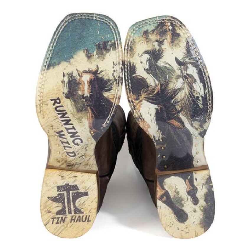 Tin Haul Men's Blocks / Running Wild Brown Goat Leather Square Toe Boots 0563