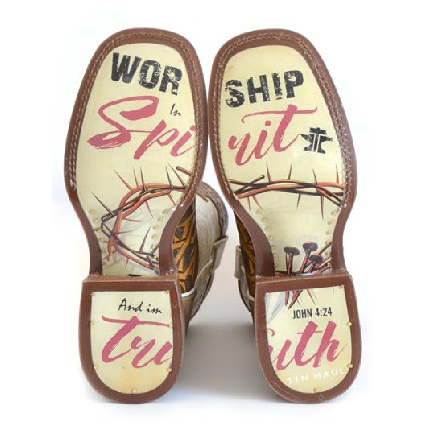 Tin Haul Men's Cross & Thorns / Spirit Tan Leather Square Toe Boots 0520