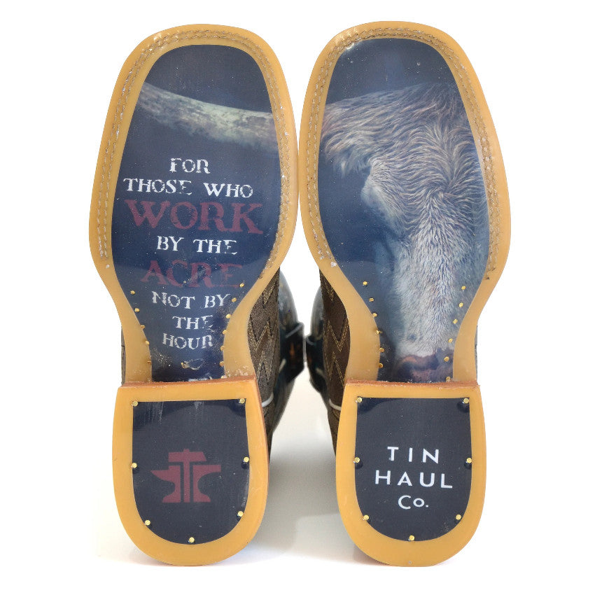 Tin Haul Men's Lightning Strikes / Working Tan Leather Square Toe Boots 0502