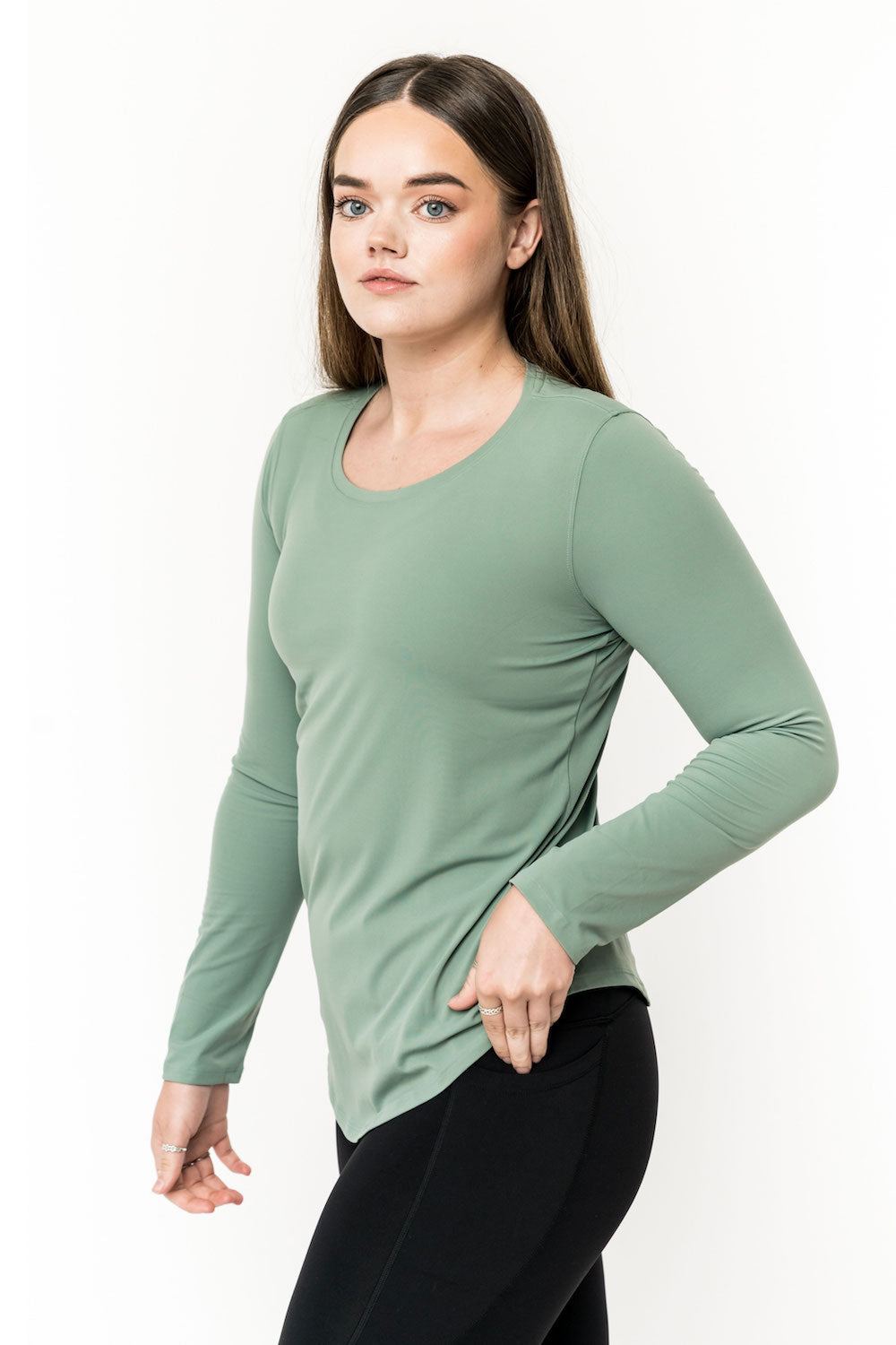 Breathe easy when you put on this comfortable long sleeve top. It is so soft and the perfect length to wear with your leggings or jeans. LOVLEI logo on back left hem to add a touch of love! SKU# 22ATOP1301
